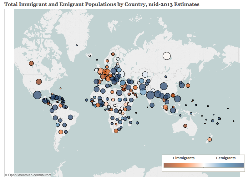 Below a map telling us total immigration and emigrant population by country. Finland is a white dot…. in Swedish we say “En vit fläck på kartan” when a place is considered nonexistent.