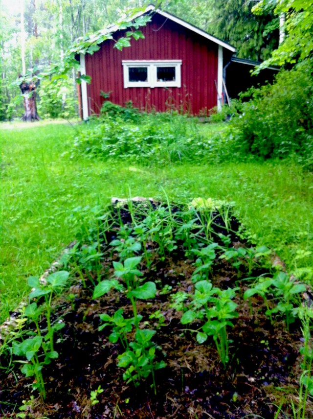 En liten uppdatering av mitt permakulturprojekt. Det växer så det brakar just nu för att det regnar ju varje dag i södra Finland. Jag satte potatis och planterade lök och sådde litet sallad i kanten. När regnet slutat falla och det torkat upp i gräset ska jag kratta ihop gräsklippet på gräsmattan och täcka jorden igen.