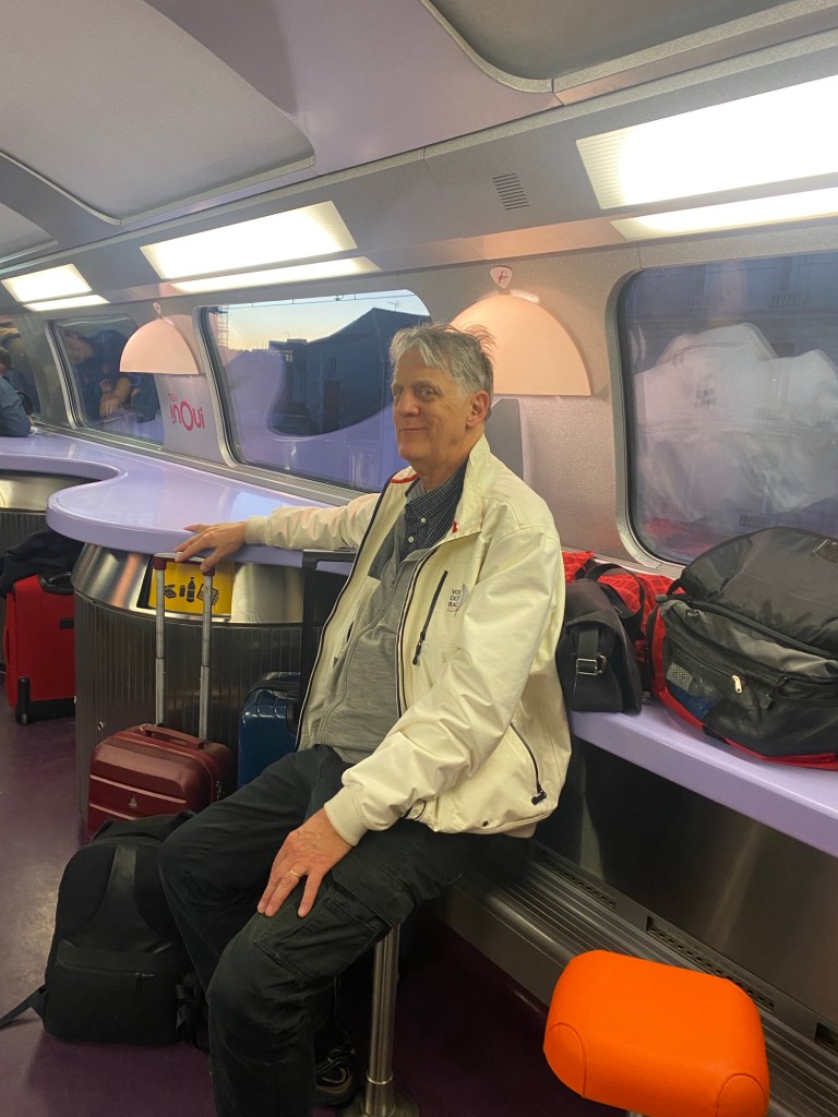 Jonathan vill ha hjältens namn för att lovorda honom till cheferna men han ville vara anonym – kanske såna hjältedåd ses i ett annat ljus i SNCF högkvarter. Efter någon timmes väntan i baren medan vi fick beskåda Provance böljande kullar och majestätiska bergsklippor och en avgift (helt officiellt och digitalt) på 20 euro är vi tillbaka i första klasslivet efter att några passagerare stiger av tåget och vi får sittplatser. Hade hjälten följt reglerna hade det kostat ”vårt gäng” ett par tusen € med alla nya arrangemang som hade krävts, för att inte tala om allt besvär och all oro.