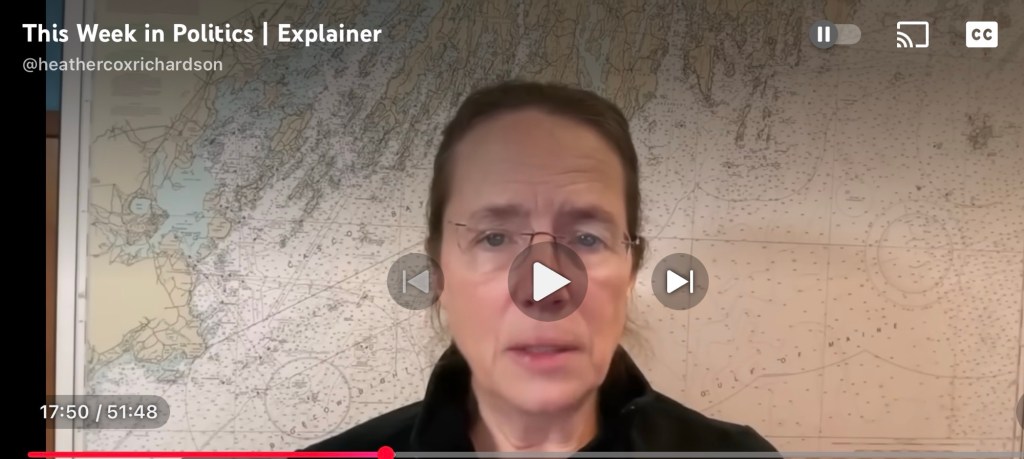Heather Cox Richardson says in her latest video “I think one never wants to live under earth-changing moments but here we are.